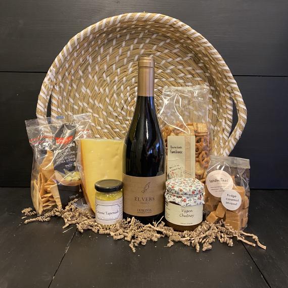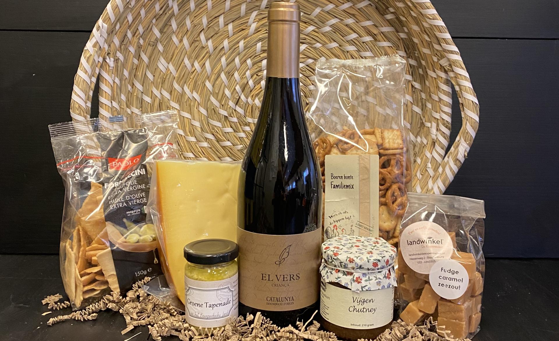 Met deze mand kun je je hart ophalen. Trek deze prachtige rode wijn open en geniet ondertussen van een lekker stuk boerenkaas en fornaccini met vijgen chutney.