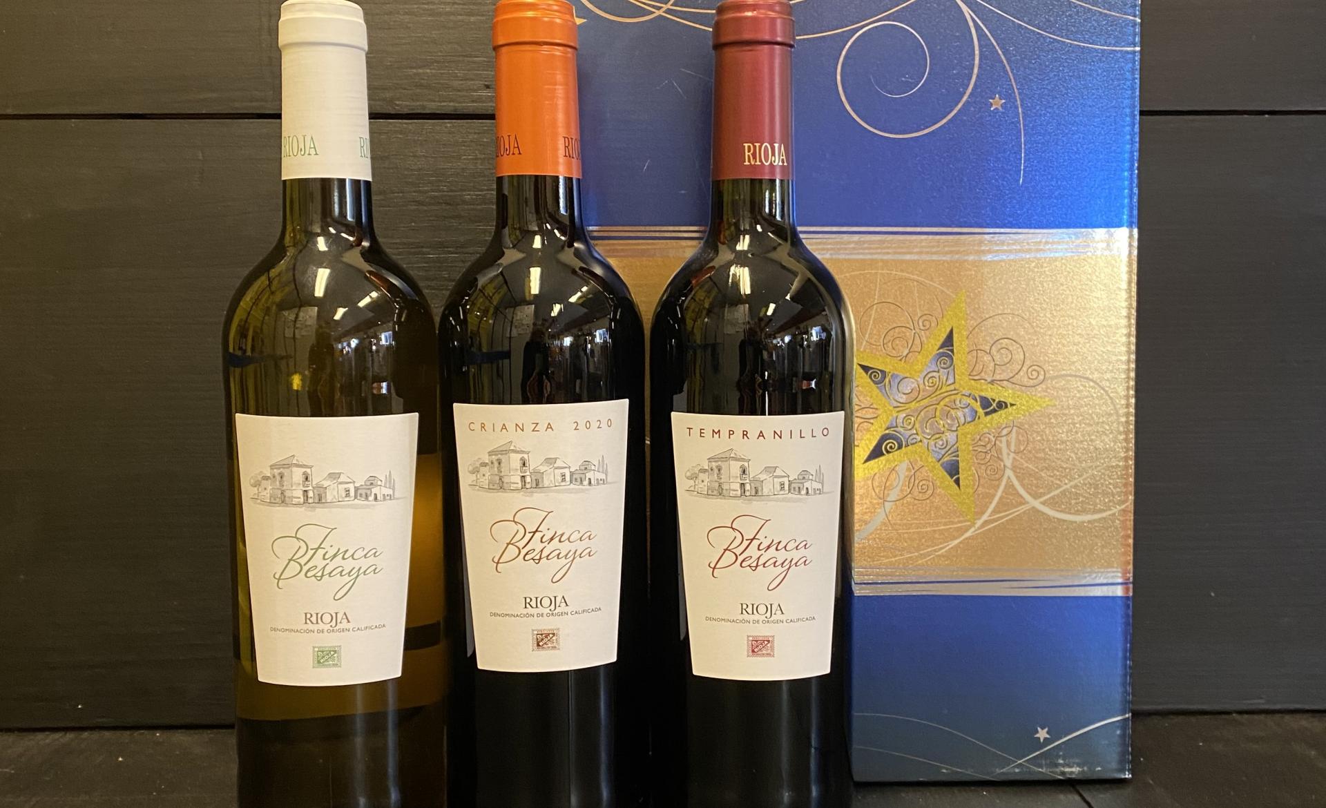 In deze mooie kerstbox vindt je drie prachtige Spaanse wijnen.